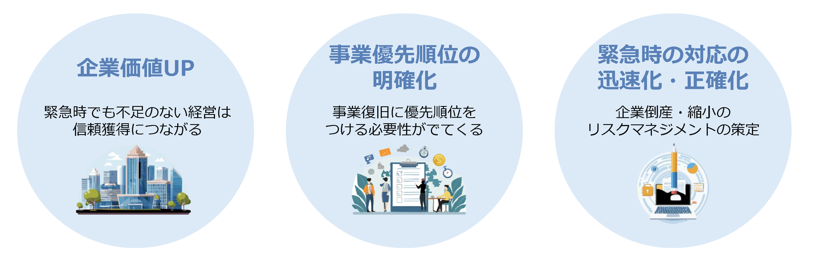 企業が自然災害、大火災、テロ攻撃などの緊急事態に遭遇した場合において、事業資産の損害を最小限にとどめつつ、