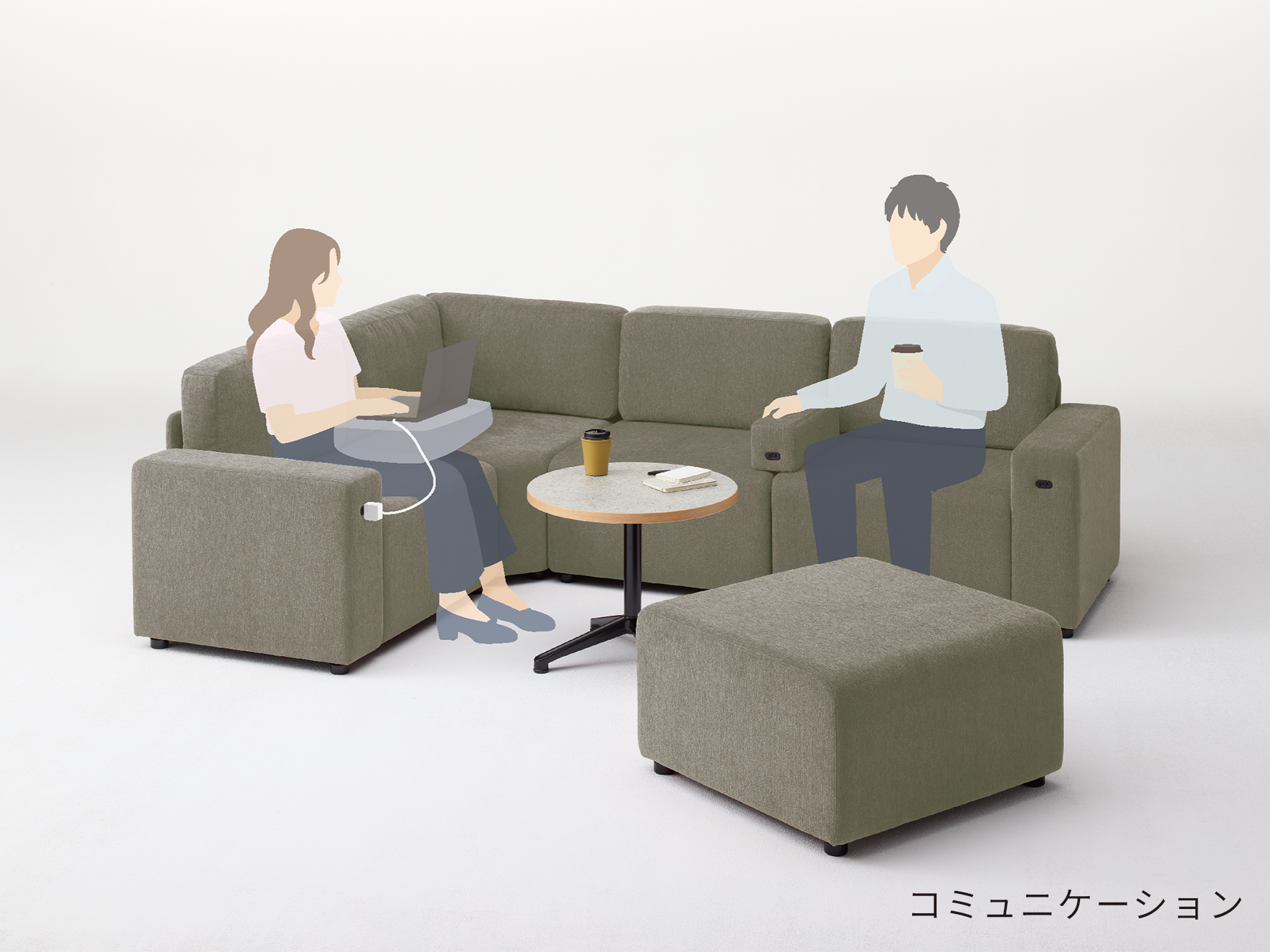 リラックスシーンはもちろん、カジュアルなコミュニケーションや、ソロワークにも対応します。